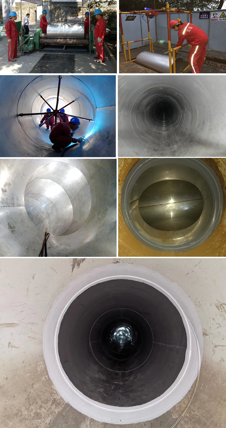 不锈钢薄板内衬乐鱼平台,是在原有管道内部内衬钢板,钢板采用卷板形式,在管道内部进行焊接,整体成形;内衬管外径与原有管道内径相等。